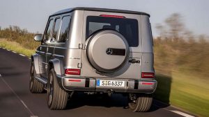 Không chỉ phía trước, đằng sau xe cũng có sự thay đổi. Trong đó, cụm đèn hậu được thiết kế lại, cản sau của xe cũng trông vạm vỡ hơn. Còn lại, Mercedes-AMG G 63 vẫn giữ nguyên bộ phận để bánh xe dự phòng ở ngay cửa sau với chất liệu bằng thép không gỉ.